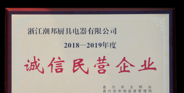 近日,浙江潮邦廚具電器有限公司獲得浙江省嘉興市2018~2019年度誠信民營企業(yè)、海寧市2019年度誠信民營企業(yè)榮譽證書。 獲此殊榮