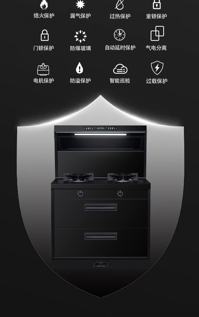 廚房七合一,26方超大巡航風量,雙核驅動變頻控制,5kW大火力,揮手智控,電熱自清潔