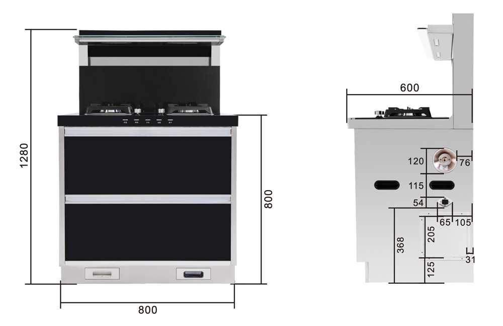 | 電磁爐功率 | 2000W(選配) | 油煙機噪音 | ≤69dB |
